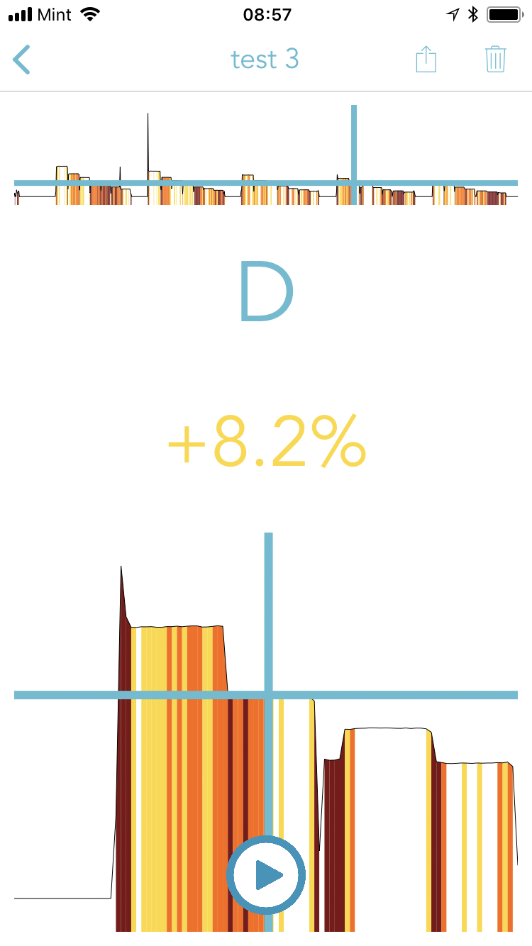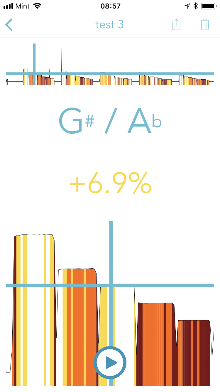 Hz Intonation is different from other tuner apps since Hz is designed to analyze your intonation while recording your playing, so you can review troublesome intervals or notes in whatever piece or exercise you’re playing. This is not a totally new feature, of course, but it is (in my opinion) a much better way to use a tuner rather than staring at it while playing (and using your eyes to play “in tune” instead of your ears).