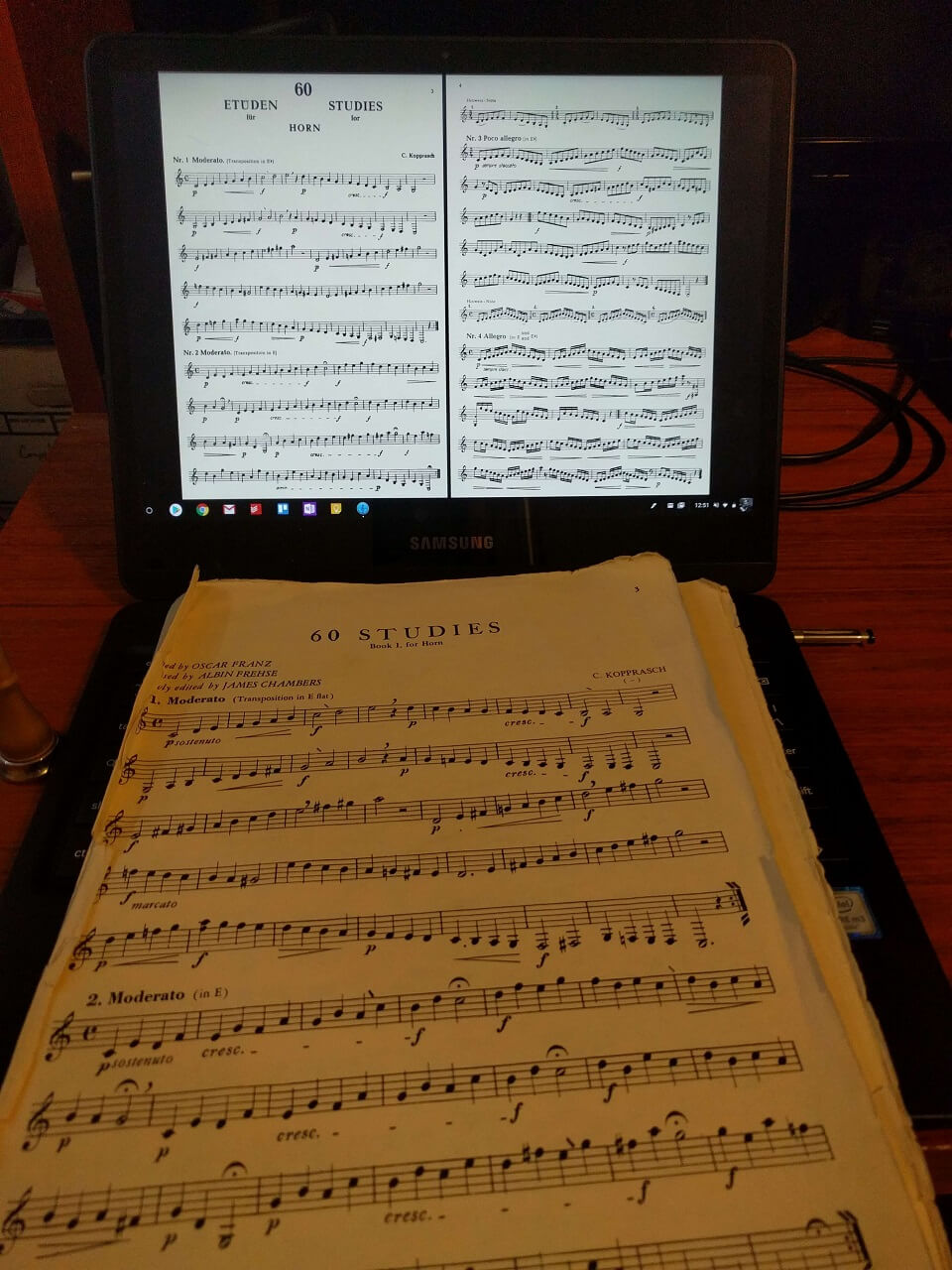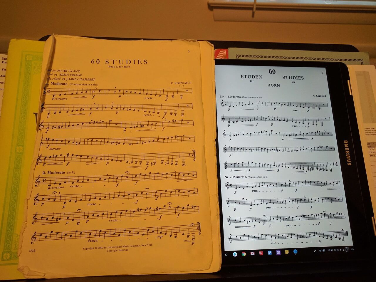 All in all, she’s quite happy with her new device. The biggest problem now – scanning in all the loose sheet music (and books) to use!